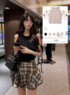 ツイード見えするカットソー素材で仕上げたタンクトップ。ノースリーブに肩のリボンが映え、ヘルシーな肌見せを演出する。