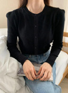 ややボリュームを持たせたパワショルが上品な雰囲気を放つカーディガン。なめらかな手触りのリブニット素材で、優しい着心地が魅力的。