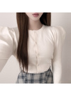 ラウンドネックで顔周りがすっきり見えるのも嬉しいポイント。
