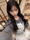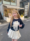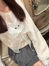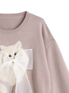 ふわふわのシャギー素材で表現したネコちゃんがとびきり愛らしいデザインのトップス。立体感のあるオーガンジーリボンもキュートなアクセントに。