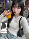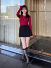 リブ編みの縦ラインがスマートに見せ、スタイルアップを叶える。