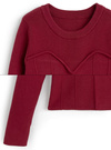 程よいフィット感で上品なムードを引き立てるニットトップス。ビスチェのような切替ラインが、さりげないおしゃれ感をプラス。