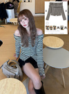 ボーダー柄オフショルダートップスの商品詳細情報のページです。