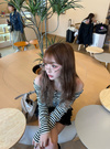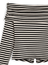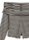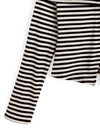 リブ素材をベースに、すっきりとしたラインを描くボーダー柄トップス。デコルテを広く見せるオフショルダーが、ヘルシーな抜け感を演出。