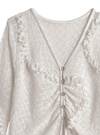全体にあしらった流れるようなフリルラインが女性らしい雰囲気を演出。