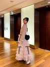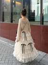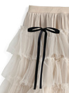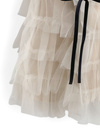 繊細なチュールをふんだんに使ってドレッシーに仕立てたティアードスカート。ボリュームたっぷりのフリルシルエットがロマンティックな雰囲気を演出。