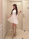 フィット&フレアのシルエットがボディラインを美しく引き立てるミニワンピース。落ち感のある生地を使用しており、動く度に優雅に揺れて上品且つ洗練された印象に。