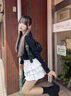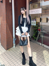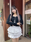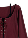 レイヤード風のアレンジを効かせたデザインが印象的なトップス。フロントのレースアップデザインが、程よい甘さとモード感を演出。