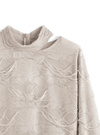 軽やかなシアー生地にお花モチーフのデザインを重ねたトップス。全体に施した大胆なダメージ加工やネックのカットラインが視線を集めるポイントに。