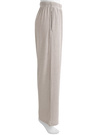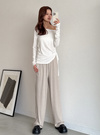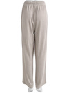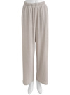 縦のラインを強調するリブニットソーで仕立てた、脚長効果抜群のストレートパンツ。ハイウエストがお腹まわりをカバーし、すっきりと見せてくれる。