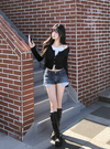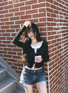 輝きを放つ小ぶりのシェルボタンがさり気ないアクセントに。