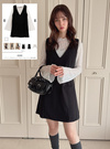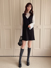 ジャンスカはシャープなVネックにストレートシルエットがすっきりとした印象に。