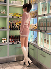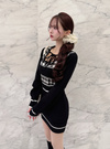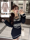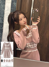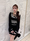 ギンガムチェック柄配色ラインニットミニワンピース[ru1353]