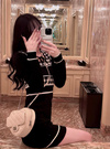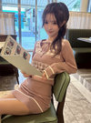 フィット感のある柔らかなニット素材を使用しており、女性らしいボディラインを強調してくれる。
