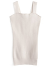 ワンピースは伸縮性のあるリブニットを使用し、ボディラインに沿う女性らしいシルエットに仕上げた。