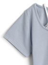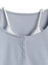 レースインナーにヘンリーネックトップスを重ねたようなレイヤード風デザイン。