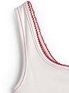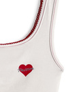 柔らかく肌触りの優しいカットソー素材で着心地の良いタンクトップ。ハートモチーフのプリントや配色ステッチを施し、メリハリを効かせたデザイン。