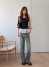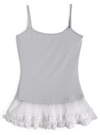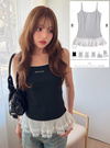 柔らかなカットソーに異素材ドッキングでデザイン性を高めたキャミソール。細かいプリーツ加工を施したチュール生地にレースもあしらった、ガーリーでボリューミーなヘムライン。