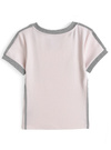 ユニフォームのようなプリントロゴとラインがスポーティームード漂うトップス。すっきりとしたVネックにコンパクトなタイトシルエットで女性らしく着こなせるデザイン。