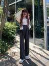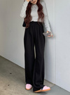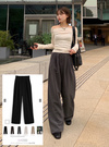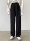 ストンとしたストレートシルエットで美脚効果抜群のベーシックパンツ。ウエストにタックを入れることで、立体感のあるフォルムをメイク。