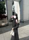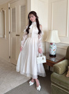 ウエストにはシャーリングを効かせ、キュッとくびれた細見えシルエットを表現。