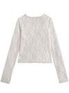 愛らしいフラワーレース生地で仕立てたシアートップスの登場。程よい透け感のさり気ない肌見せ具合がレディライクな着こなしに。