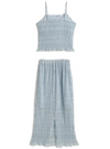 カップ付きフリルシャーリングキャミソール×ロングスカートセットアップの商品詳細情報のページです。