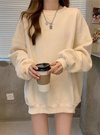 ゆったりと着られるオーバーシルエットが魅力のラフなスウェットトップス。ヒップまで隠れる丈感なので、ワンピース風に着用するのもおすすめ。