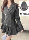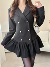 ジャケット素材で仕立てた大人レディな装いのミニワンピース。テーラードカラーにマットなゴールドボタンが上品で落ち着きのある雰囲気。