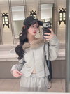 ファーオフショルダーパーカー×ワイドパンツスウェットセットアップの商品詳細情報のページです。