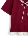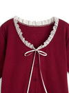 ネックラインに細かいレースとリボンを添え、ガーリーな雰囲気をオン。
