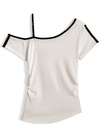 アシンメトリーなワンショルダーデザインでこなれ感を漂わせるトップス。ナンバーロゴや肩のサイドラインがスポーティーなニュアンスをプラス。