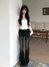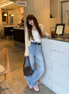 お手持ちのインナーにシンプルなデニムを合わせるだけでこなれたスタイリングに。