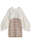 シャギーボレロ×チェック柄ワンピースニットアンサンブルの商品詳細情報のページです。