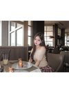 大きめカラーが顔まわりを華やかに印象付けるニットトップス。