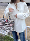 リラックスムードの漂うオーバーサイズのロングTシャツ。しっかりとしたコットン生地で、一枚でもレイヤードでも着やすい厚み。