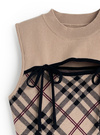 チェック柄フロントオープンリボンノースリーブニットミニワンピースの商品詳細情報のページです。