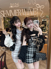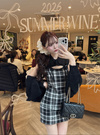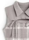 チェック柄フロントオープンリボンノースリーブニットミニワンピースの商品詳細情報のページです。