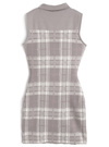 クラシカルなチェック柄デザインの大人ガーリーなニットワンピース。胸元のカッティングにリボンを添えることで、甘さと色っぽさを演出。