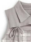 チェック柄フロントオープンリボンノースリーブニットトップスの商品詳細情報のページです。