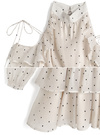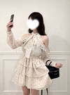 ドット柄ショルダーオープンアメスリティアードミニワンピースの商品詳細情報のページです。