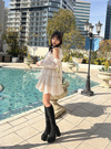 3段にティアードしたスカート部分も特徴で、ふんわり広がったフレアシルエットがキュート。