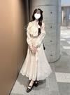 ウエストにシャーリングを効かせることで、女性らしいキュッとくびれたボディラインをメイク。