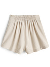 さらさらとした質感の生地で、季節を問わず着回せるショートパンツ。フロントにあしらったフェイクポケットが上品で洗練された印象をプラス。