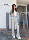 裾にかけて広がったフレアラインが女性らしさ漂うスウェットパンツ。センターピンタックを施しており、縦のラインが強調しされ美脚効果◎。