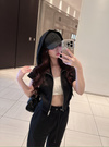 ダブルジップ仕様なので、おなかをチラ見せして抜け感のある着こなしも◎。