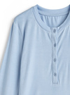 やわらかく伸縮性のあるカットソー素材で、肌に優しくなじむセットアップ。ボタン付きのヘンリーネックがカジュアルさを引き立て、抜け感をプラス。