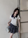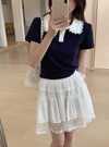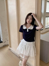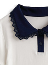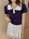 レース襟配色ポロトップス[sd092]