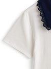 レース襟がキュートなアクセントの配色デザインポロトップス。