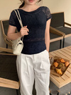 レースを全体にあしらい、繊細さと柔らかな質感が引き立つトップス。インナーとしてキャミソールが付属し、透け感のある生地でも一枚で着こなせる。